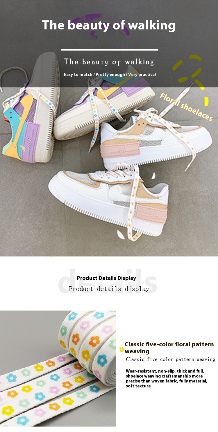 Duplex Printing Colorful Flower Casual Shoelaces