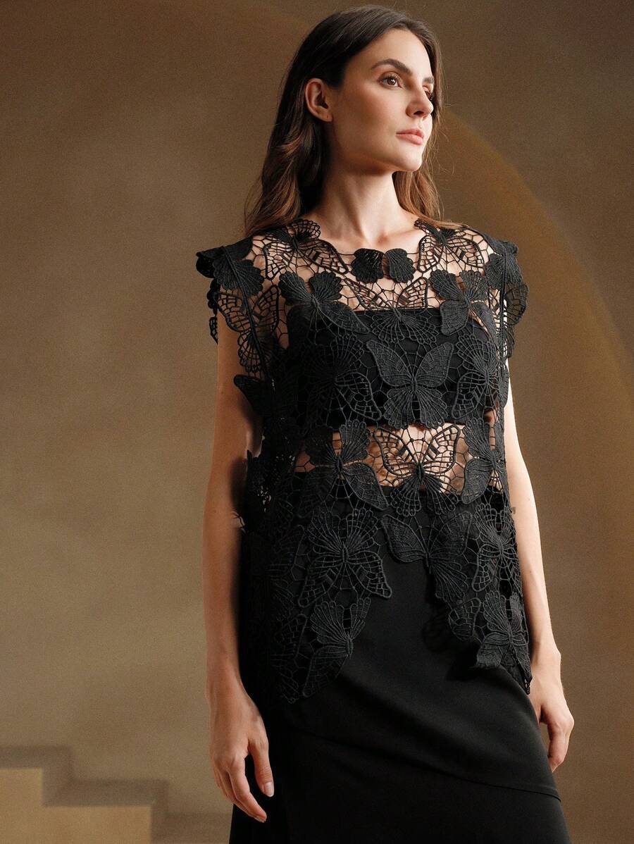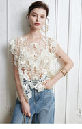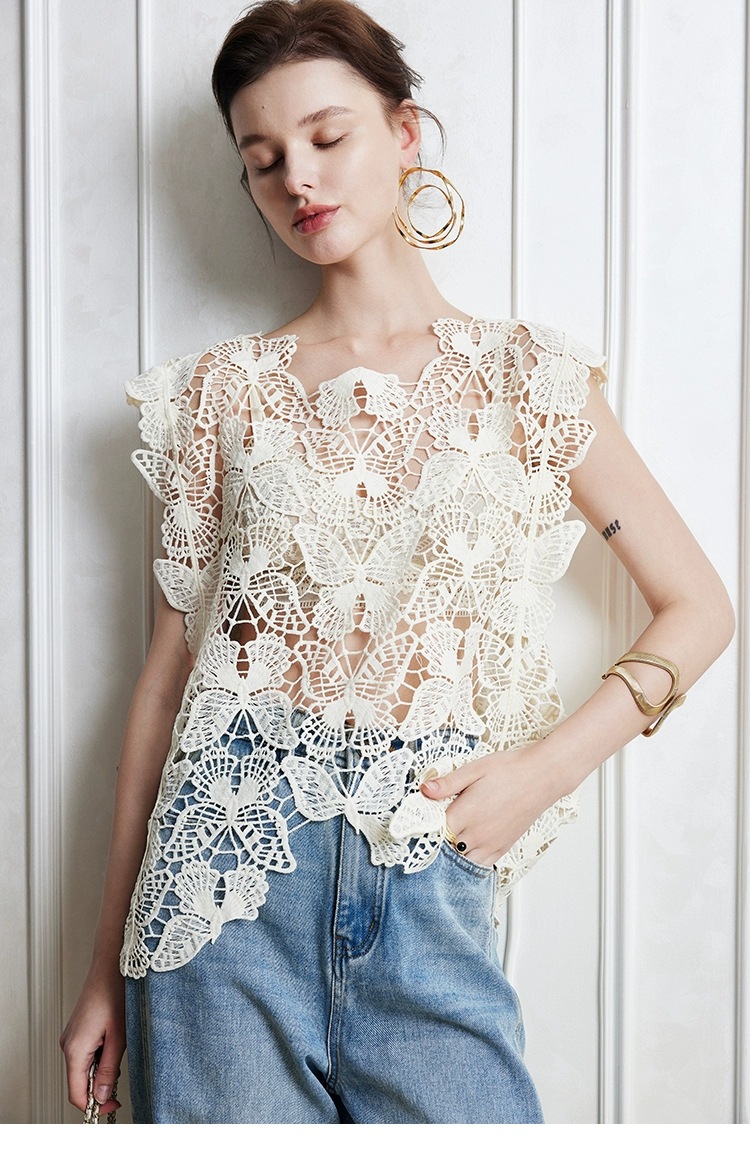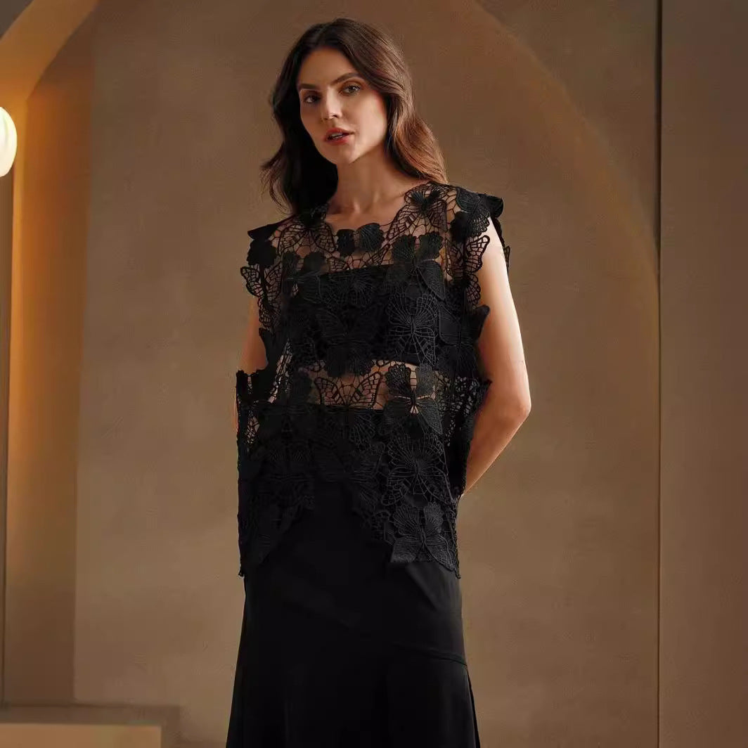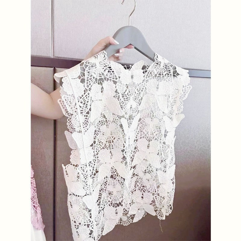 Irregular Butterfly Hollow Out Outer Match Sleeveless Blouse
