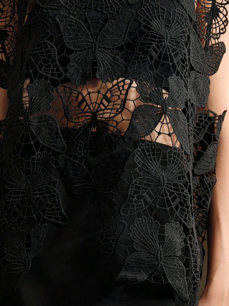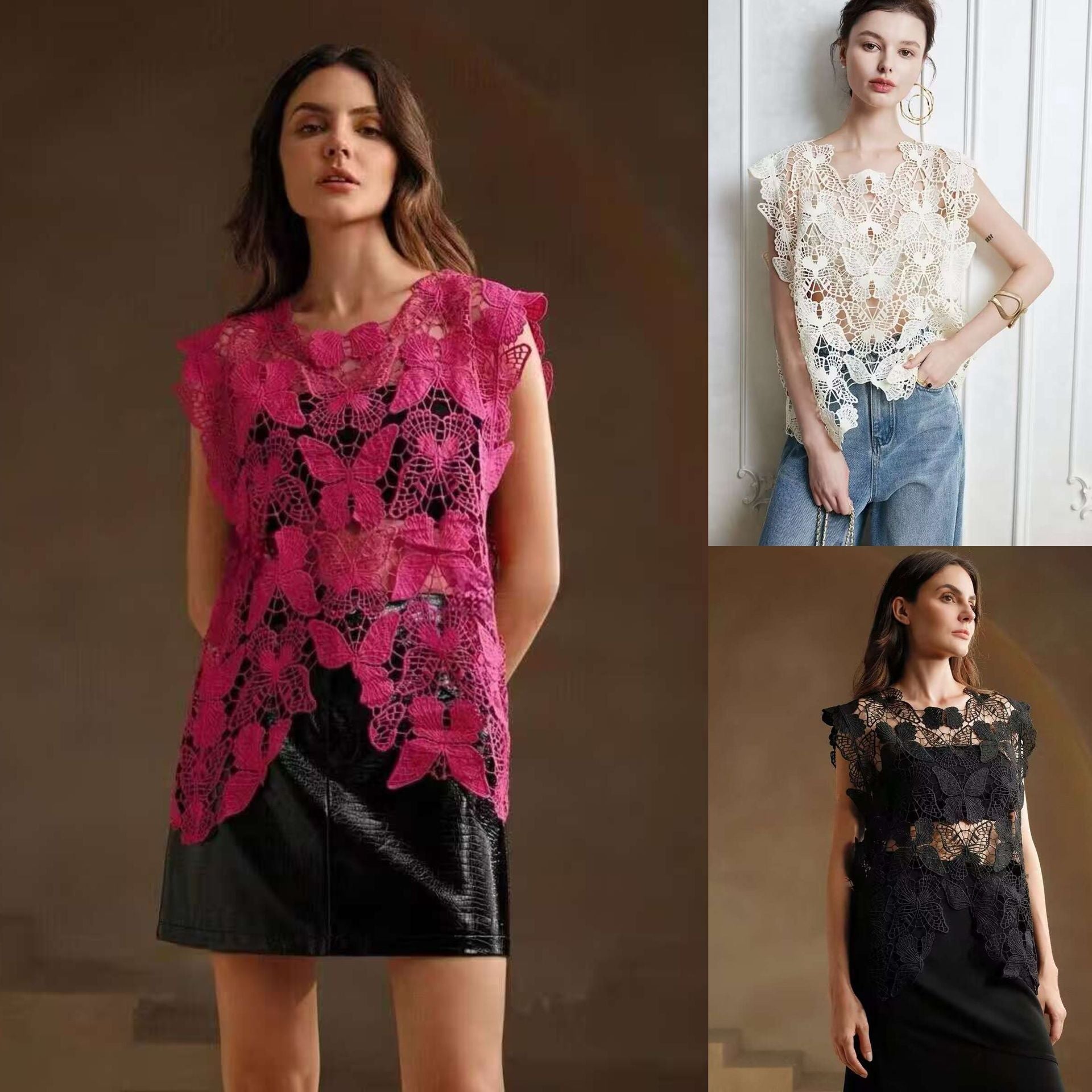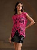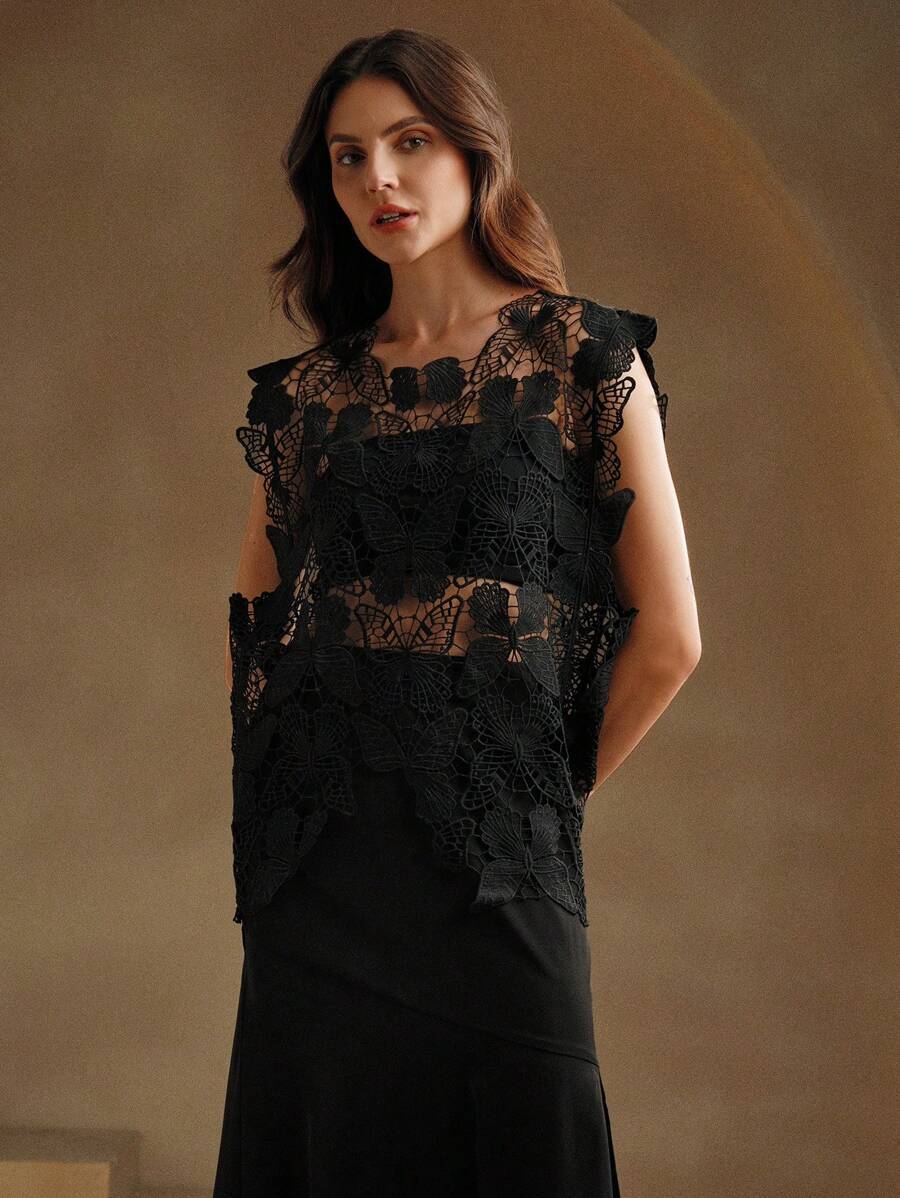 Irregular Butterfly Hollow Out Outer Match Sleeveless Blouse